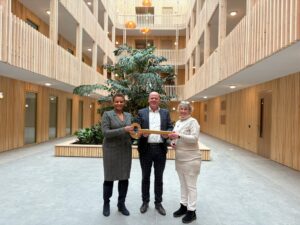 Deze week kregen de eerste bewoners van de nieuwe sociale huurwoningen aan de Schwartzstraat in Boskoop feestelijk de sleutels uitgereikt. Daarmee is de oplevering van…
